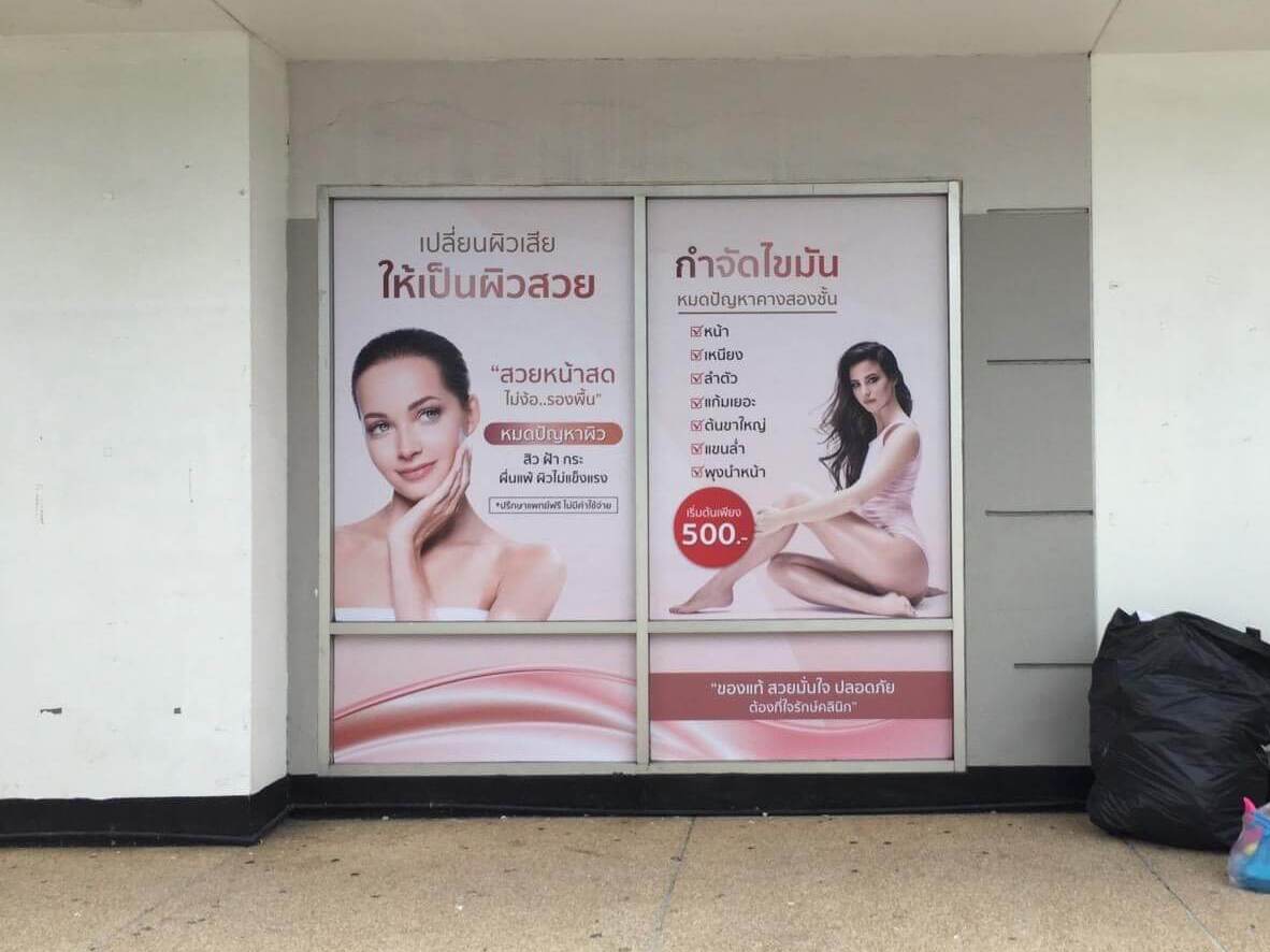- ติดกระจกหน้าร้านค้า/อาคาร : ใช้เป็นสื่อโฆษณาโปรโมชั่นสินค้าใหม่ หรือสร้างภาพลักษณ์แบรนด์ให้โดดเด่น