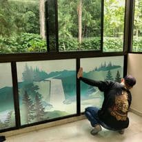 - สร้างลวดลาย ฟิล์มฝ้าขุ่น 3M บนกระจกบานเลื่อนในร้านอาหารหรือร้านกาแฟ