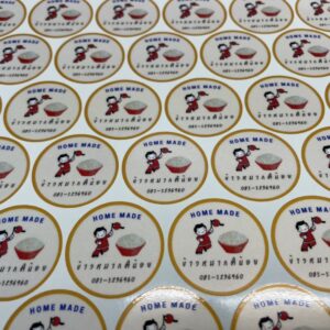 - เลือกวัสดุและการพิมพ์ ที่เหมาะสมกับการใช้งาน เช่น สติ๊กเกอร์ติดกล่องข้าว หรือ สติ๊กเกอร์ติดกล่องขนม