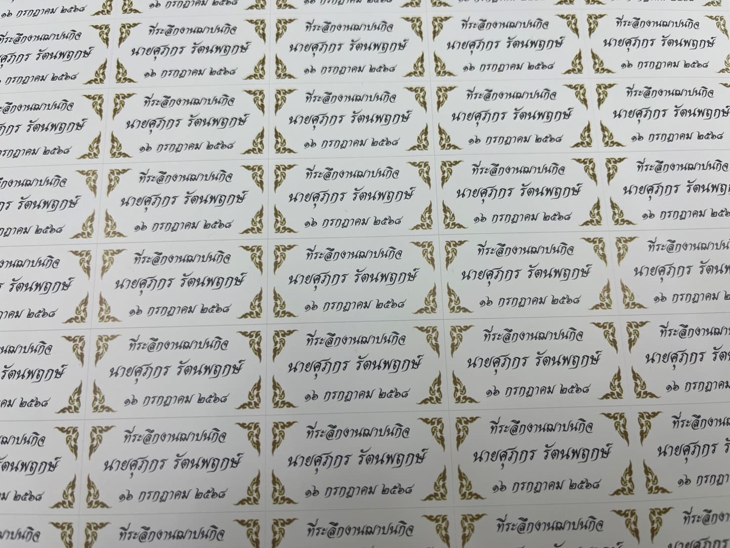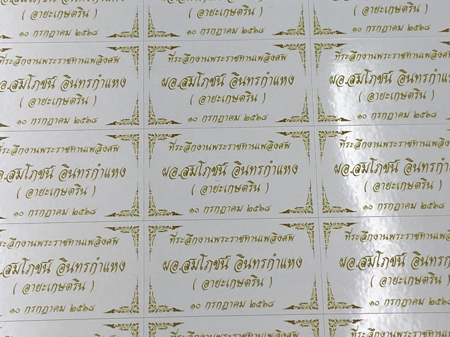 สติ๊กเกอร์ของชำร่วยงานศพสีทอง