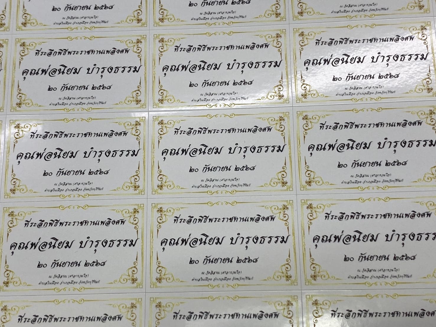 รูปแบบของ สติ๊กเกอร์ของชำร่วยงานศพ ที่นิยมใช้ในปัจจุบัน